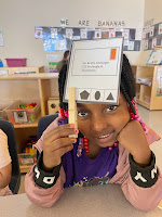 In the math center we used our manipulatives to measure and compare lengths and widths of the pictures that we were measuring and matched and identified various shapes.